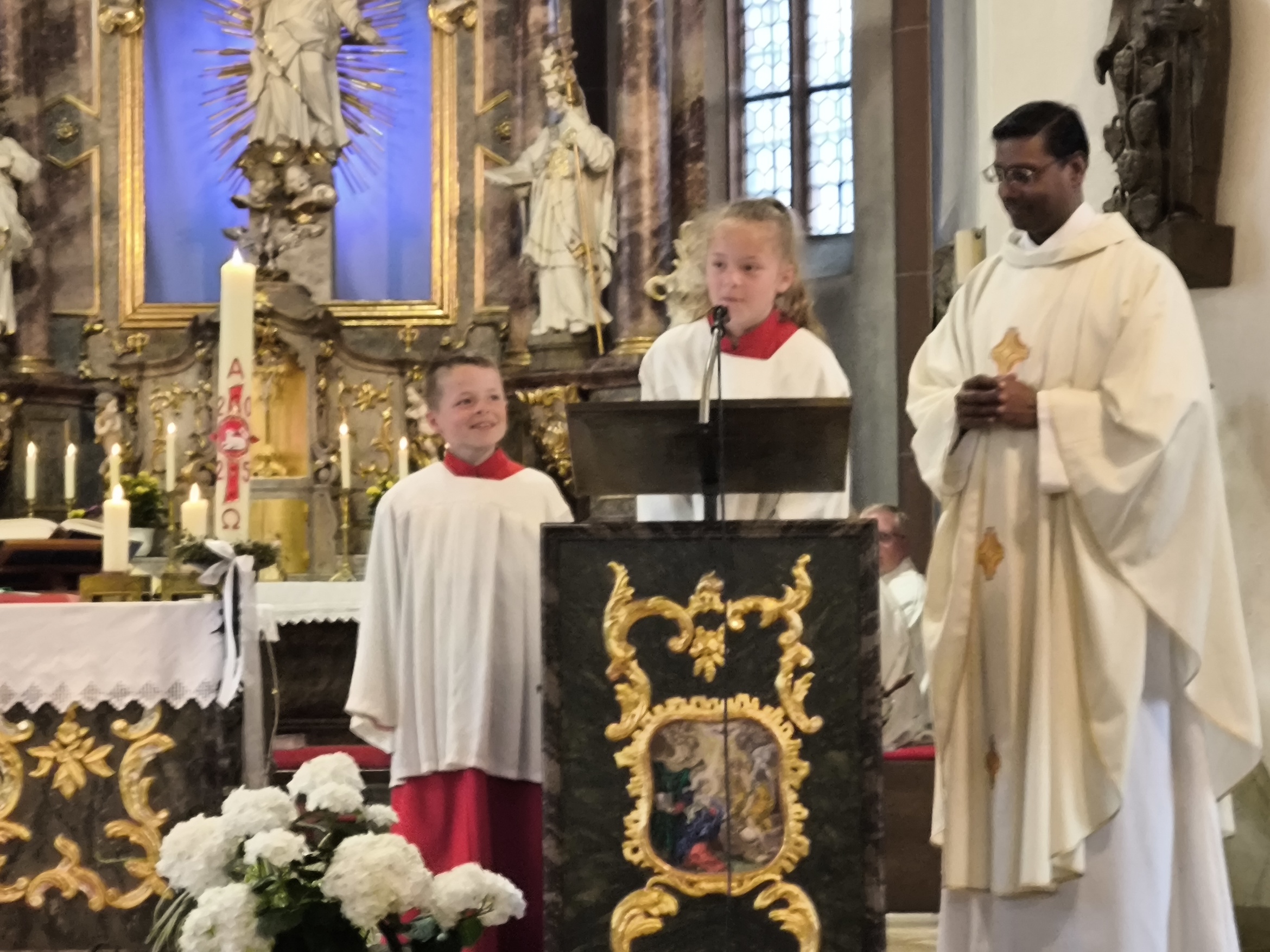 Am 11. Mai sind die beiden zur Erstkommunion gegangen und hatten sich zuvor schon für den Dienst als Ministrant interessiert. Gemeinsam mit den beiden hatte sich auch Matilda Hessler auf den Weg „an den Altar“ gemacht, die jedoch an diesem Abend verhindert war. Auch sie wird zeitnah in die Gemeinschaft der Ministranten aufgenommen.